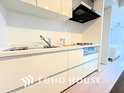 シンプルな部屋の雰囲気に溶け合うナチュラルキッチン