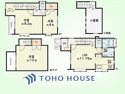 3LDK+小屋裏収納、フリースペース 土地面積63.77平米、建物面積82.9平米