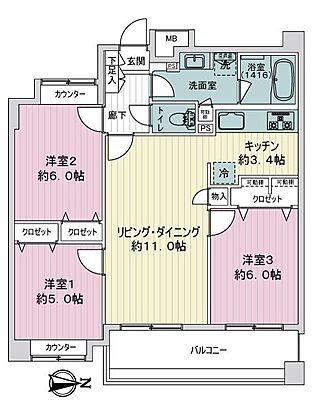 | 間取り | 3LDK | 専有面積 | 66.91m2(壁芯) |
