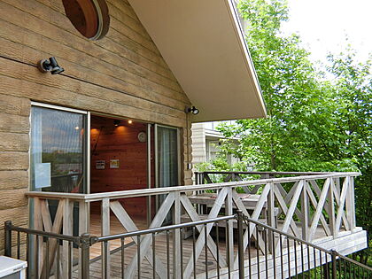 ログハウス内は木の香り漂う無垢材仕上げ、ハンモックやロフトなどキャンプ体験ができます。 (有償)