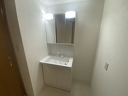【洗面所】 洗面台の三面鏡の裏には収納があるので、見られたくないものの収納に便利(新品交換済)