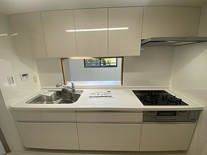 【キッチン】 リビングで遊んでいるお子様を見ながらお料理ができ、子育て中のパパママにも安心の設計です!(新品交換済)