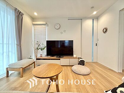 ◆瀟洒な空間◆落ち着いた小棚や室内の緑光、アクセントのある彩が見事に調和させた瀟洒なリビングルーム。ここに集まる家族の会話と笑顔が絶え間なく続く幸せな空間。