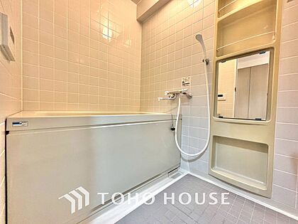 【浴室】《一日の疲れを落としてくれる場所は、落ち着く場所でなければならない》 高級感溢れるカラーと大きさ・柔らかな曲線で構成された半身浴も楽しめるバスタブが心地よさをもたらします。