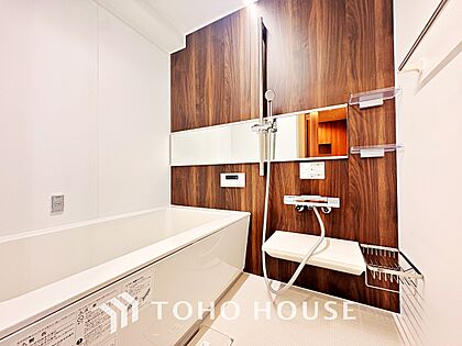 【浴室】《一日の疲れを落としてくれる場所は、落ち着く場所でなければならない》 高級感溢れるカラーと大きさ・柔らかな曲線で構成された半身浴も楽しめるバスタブが心地よさをもたらします。