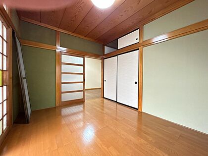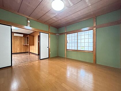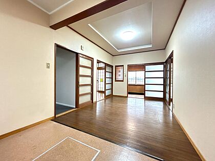 【10/31撮影リフォーム中】中央8帖和洋室の写真です。フローリング重張り、天井や壁はクロス張りを行います。隣のLDKと合わせて18.5帖のLDKとしても使えますね。