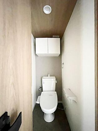 白を基調とした、シンプルながらも落ち着くデザイン。洗浄付き温水便座で機能性も兼ね備えています♪毎日に欠かせないお手洗いだからこそ、ほっと落ち着く空間としての機能を重視しています。
