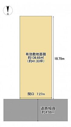 | 土地面積/坪(坪単価) | 136.66m2/41.41坪(93.70万円) | 代表的な接道 | 一方 公道 北 5m ※詳細は備考欄をご確認ください |