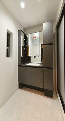 十分な大きさの洗面台は収納もさる事ながら、身だしなみチェックや歯磨きなど、朝の慌ただしい時間でもホテルライクなスペースで余裕とゆとりを感じて頂けます。