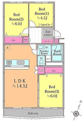 | 間取り | 3LDK | 専有面積 | 73.32m2(壁芯) |