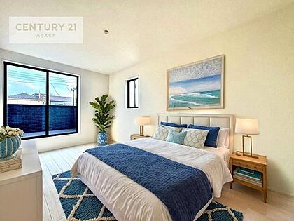 家具はCGパースです。バルコニーに面した洋室。優しい光が差し込む洋室は、朝の目覚めも気持ちが良さそうですね。おうち時間もゆったりと過ごすことができます。
