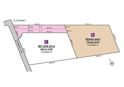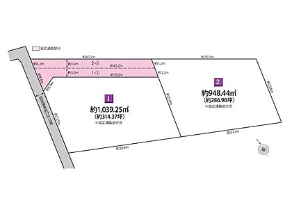 •  【2号区】約948.44m2の広大な敷地/区画図※実測図ではありません。