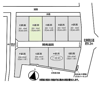 区画図:全9区画:陽当たり良好な広々とした区画。