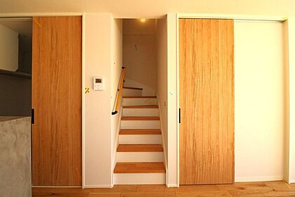 *リビング*LDK約17.8帖で広々としております。対面式キッチンとリビング階段でご家族とのコミュニケーションも取りやすいです。