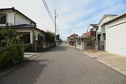 しっかりと整備された前面道路です。対向車がきてもすれ違うことができる広さがあるので安心ですね。前面道路道幅は5.9メートルです。