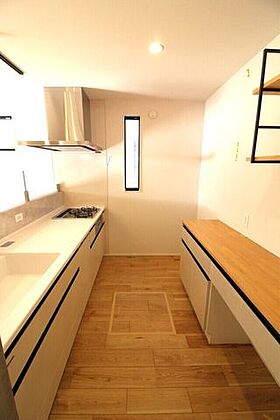 解放感のある対面キッチンは、リビング全体を見渡すことができるので、ご家族を身近に感じることができます。