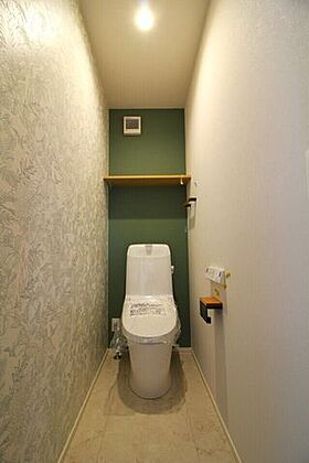 *1階トイレ*アクセントクロスがお洒落で落ち着いた雰囲気のお手洗いですね。1・2階にトイレがございます。朝の忙しい時間帯も待たずにすみそうですね!