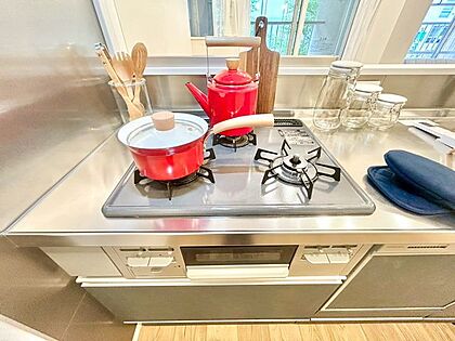忙しいときでも一度にたくさんの料理が作れる3口コンロ。使い勝手の良さを考えました。