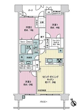 バルコニーの先には住宅地が広がっており眺望良好です(永続的に保証されるものではございません)