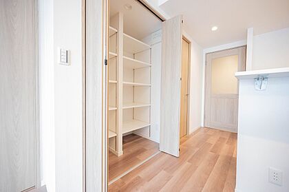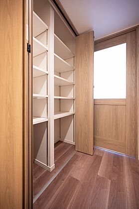 可動式棚板で調整できる便利なリビングダイニングの収納スペース