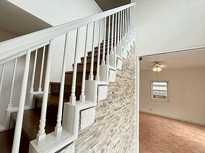 白い手すりがおしゃれな階段! 家族の笑顔が集まる空間になりそう!