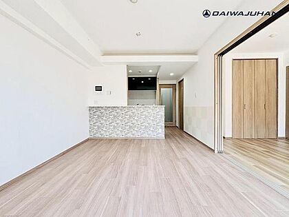 キッチン越しに広がる、光あふれるリビングと洋室。視線が抜ける設計で、日常に心地よい開放感をプラスします。