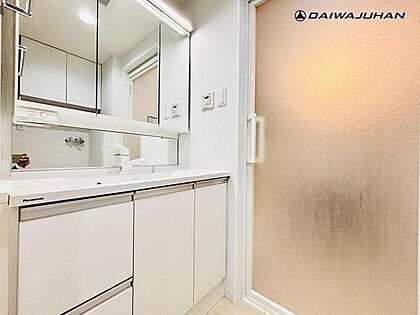 ミラー裏収納でスッキリ整う洗面台。白を基調とした空間が、毎朝の身支度を爽やかに彩ります。