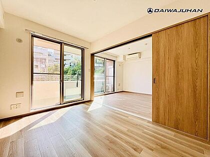 柔らかな陽光に包まれるLDKと洋室。引き戸を開ければ、ひとつながりの開放的な空間に。暮らしの自由度が広がります。