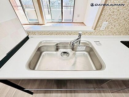 ゆとりあるワークスペースとスタイリッシュなシンク。料理の時間が楽しくなる、機能美あふれるキッチンです。