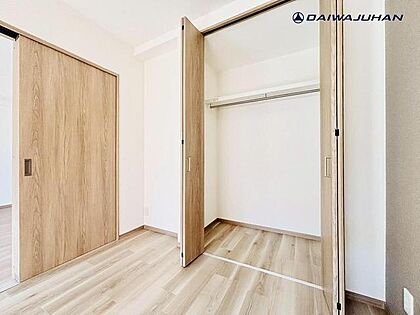 奥行きのあるクローゼットで、衣類も小物もすっきり収納。シンプルながら使いやすさに配慮された造りです。