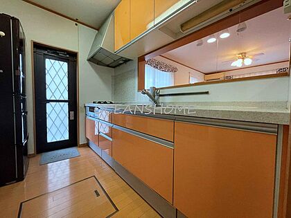 システムキッチンは吊戸棚付きです♪直性ゴミ捨てできる勝手口が付いているのは嬉しいですね♪