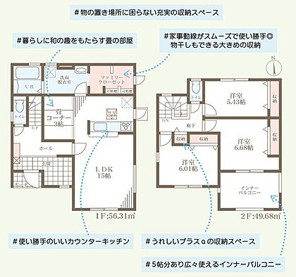 | その他 | ●温水洗浄便座 ●全居室収納 ●床下収納 ●長期優良住宅認定通知書 ●所有権 ●2階建て ●木造 ●長期優良住宅 ●平坦地 |