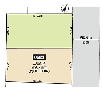 | 土地面積/坪(坪単価) | 99.78m2(登記簿)/30.24坪(98.50万円) | 代表的な接道 | 一方 公道 北東 5.6m ※詳細は備考欄をご確認ください |