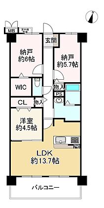 間取り 1LDK 専有面積 67.85m2(壁芯)