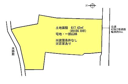 | 土地面積/坪(坪単価) | 617.42m2(登記簿)/187.1坪(25.70万円) | 代表的な接道 | 一方 公道 南 3m ※詳細は備考欄をご確認ください |