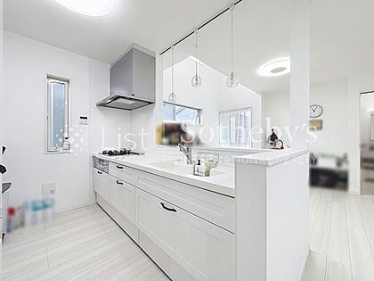 ◆キッチン◆システムキッチンは対面キッチン仕様になり広さも丁度良くお料理がしやすいです!引き出しが多数あり調理器具や調味料のストックなどの収納も便利で収納量が豊富です!