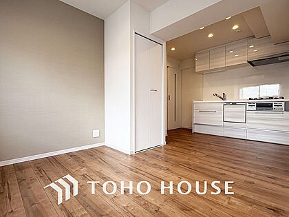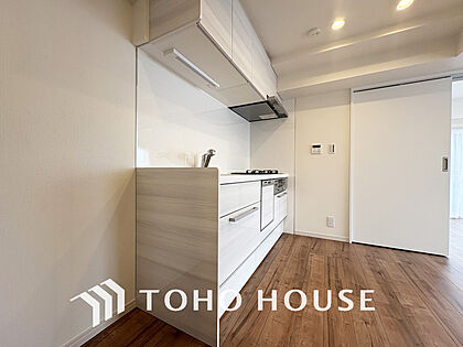 シンプルな部屋の雰囲気に溶け合うナチュラルキッチン