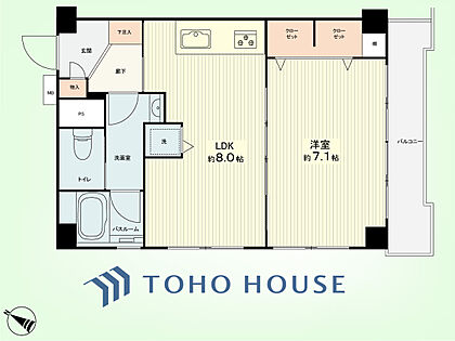 1LDK 専有面積37.74平米、バルコニー面積5.10平米