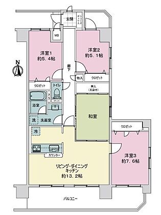 | 間取り | 4LDK | 専有面積 | 93.42m2(壁芯) |