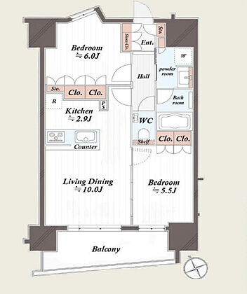 | 間取り | 2LDK | 専有面積 | 55.83m2(壁芯) |