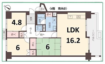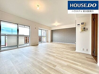 南向きのバルコニーガラス製の壁面なので太陽の光がお部屋の奥まで届いています。