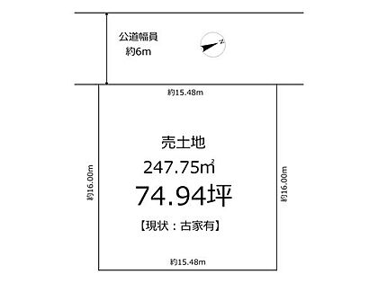 | 土地面積/坪(坪単価) | 247.75m2(登記簿)/75.08坪(26.40万円) | 代表的な接道 | 一方 公道 西 6m ※詳細は備考欄をご確認ください  |