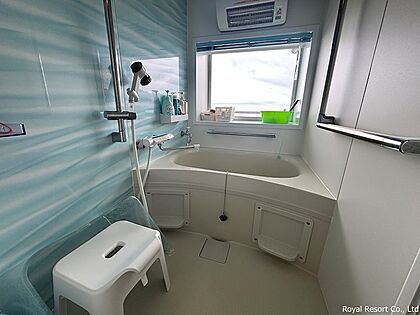 【浴室】オーシャンフロントの浴室には戸別温泉が引き込まれております。