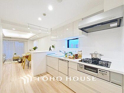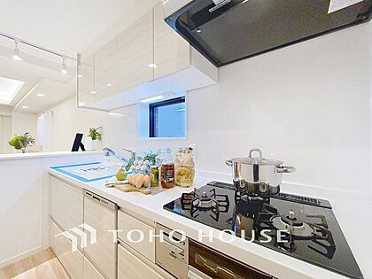 「家事時短の叶うキッチン◎」効率よくお料理ができる3口コンロ・食洗機・出し入れしやすいスライド収納を完備したシステムキッチン。確かな機能性を実感頂けます。