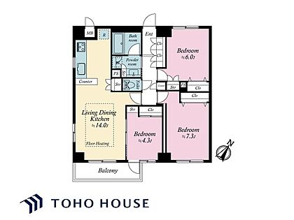 「クレッセント中目黒」11階×南東向き。75平米の開放的な空間。床暖房・食洗器など、生活を彩る設備が豊富な住戸です。