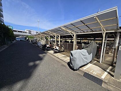 屋根付きのバイク置き場で雨に濡れず安心