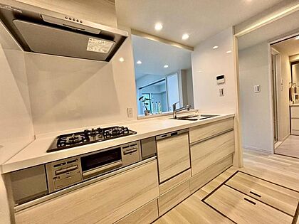 料理の幅を拡げてくれる三口コンロの使いやすいシステムキッチンを採用。ワイドなカウンターで、将来お子様と一緒にお料理をするときも重宝します。