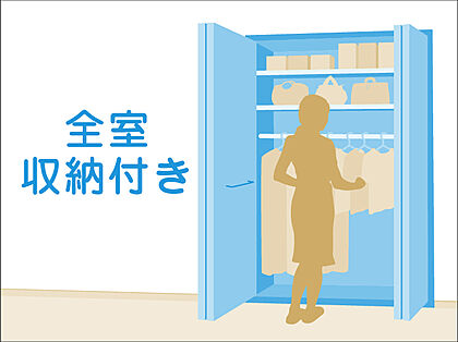 全室収納付き 収納を全室に設置。衣類はもちろん、部屋ごとに必要なものを細かく収納でき、利便性も高まります。