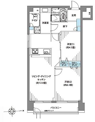 約6.1帖の洋室はバルコニーに面しており、日当たり・風通しが良いお部屋です