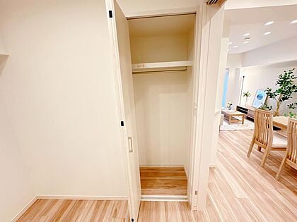 大きいクローゼットはハンガーポール付きで嵩張る衣類も効率的に収納できます